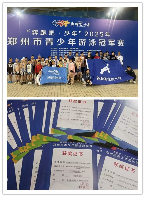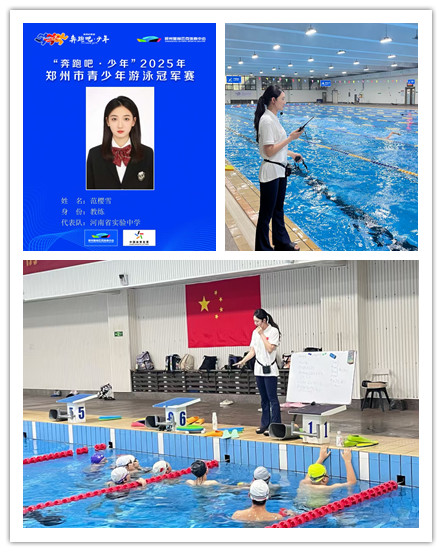 在国庆佳节之际,河南省实验中学游泳队传来捷报。10月1日,“奔跑吧·少年”2025郑州市青少年游泳冠军赛比赛中,我系实习生范樱雪以教练员身份带领该校游泳队凭借出色发挥,夺得10金、3银、5铜的优异成绩,同时荣获团体总分与金牌榜第一名,以昂扬向上的青春风采向国庆献礼。