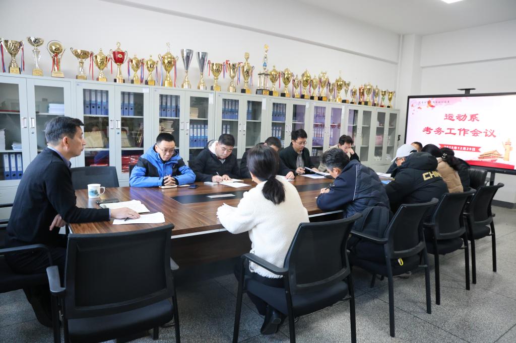 为确保本学期期末考试工作规范、有序、顺利进行,12月29日运动系组织召开2025-2026学年第一学期期末考务工作专题会议。系主任夏书宇、副主任宋洪珍、吴卫东以及各教研室主任参加会议。