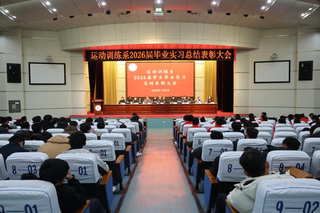 为全面总结教育实习成果,表彰先进典型,深化实践育人成效,1月5日下午,运动训练系在学院学术报告厅隆重召开2026届学生毕业实习总结表彰大会。校领导张学领、教务处处长阎彬、运动训练系党政班子成员、各实习基地代表、全体实习指导教师及2022级全体实习生共同参会。大会由运动训练系党总支书记姚三强主持。