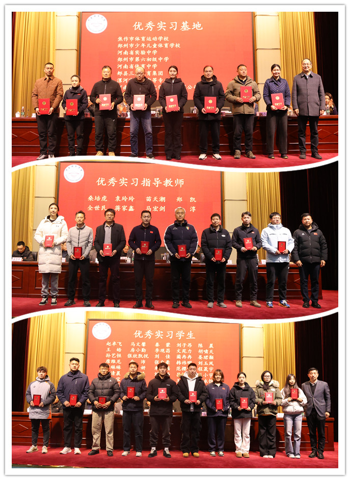 在发言环节,优秀实习生代表刘玉凤、范樱雪、马文馨依次分享了实习期间的收获与感悟;优秀指导教师代表马宏剑、蒋家鑫结合指导经历,探讨了实践教学中的经验与方法;优秀实习基地代表焦作市体育运动学校副校长卢林、河南省实验中学体育组主任闫崇文则从用人单位角度,充分肯定了我系学生的专业素养与实践能力,并对校企协同育人提出展望。